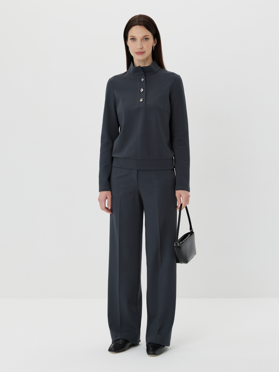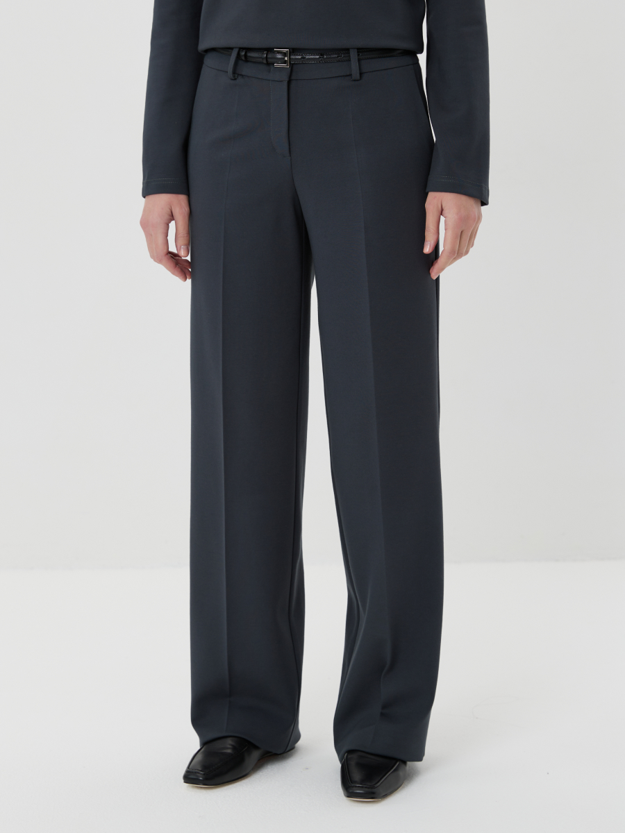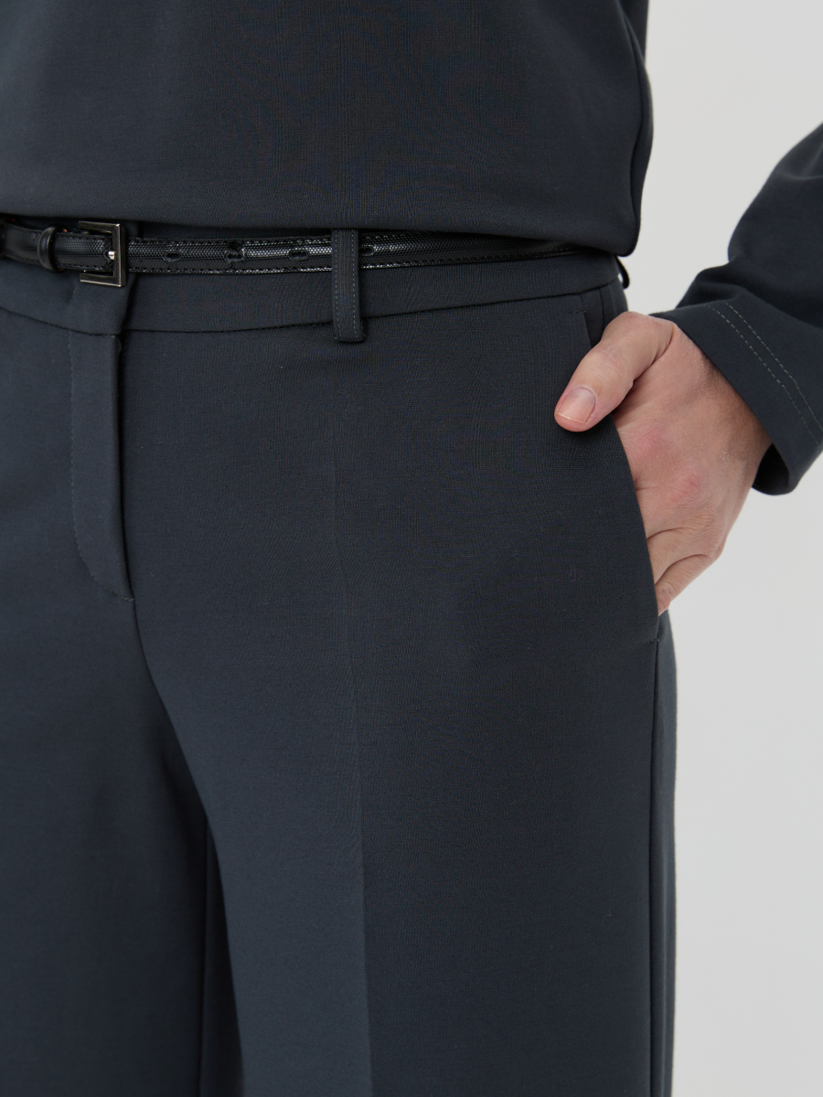 Брюки классического кроя выполнены из мягкого и комфортного трикотажа в элегантном табачно-зеленом оттенке. Прямой силуэт и лаконичный дизайн делают модель универсальной для повседневных и рабочих образов. Эластичность материала обеспечивает свободу движений и удобную посадку. Брюки сочетаются с джемпером (4.6.2-274), формируя стильный и практичный комплект.