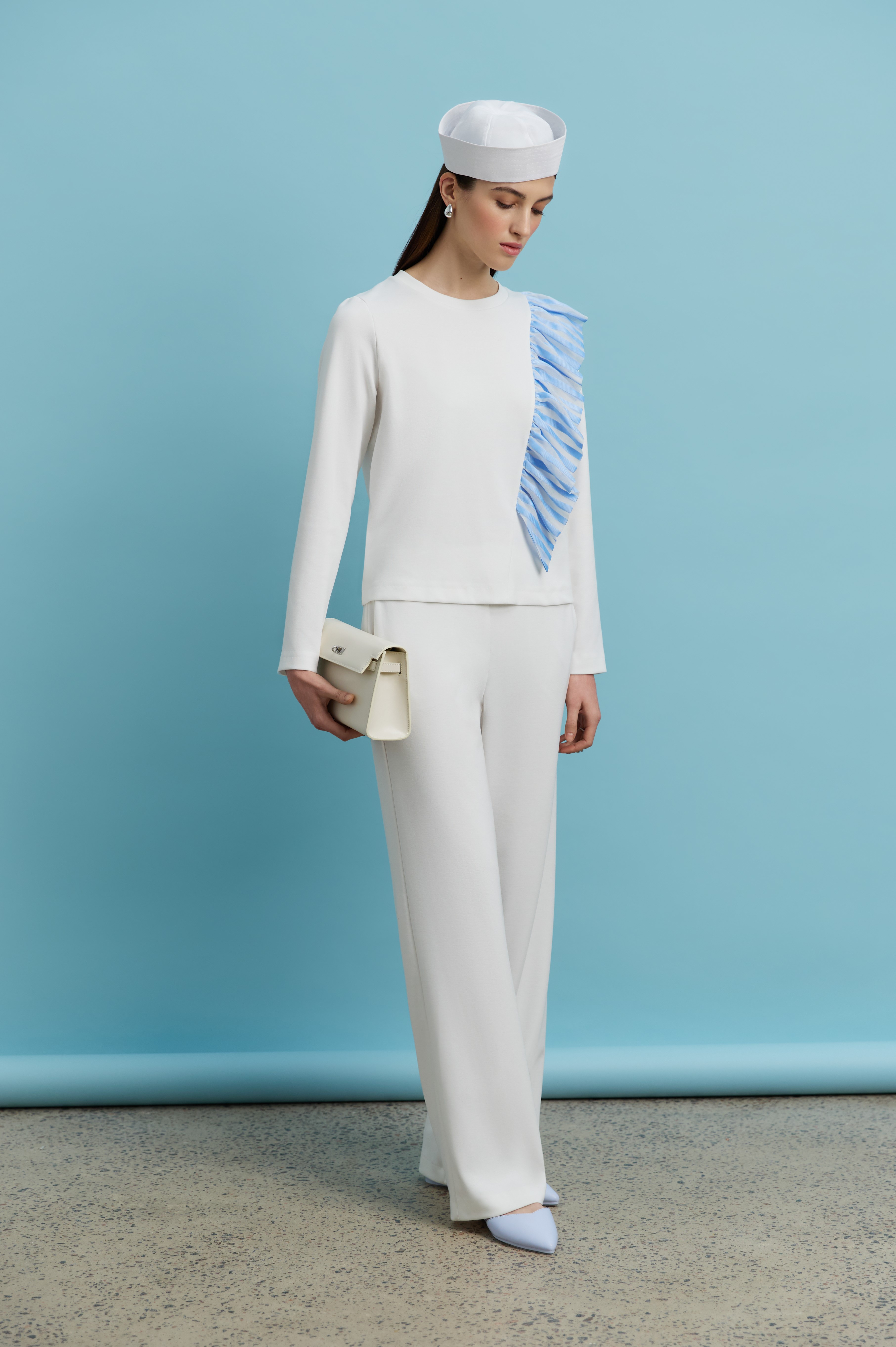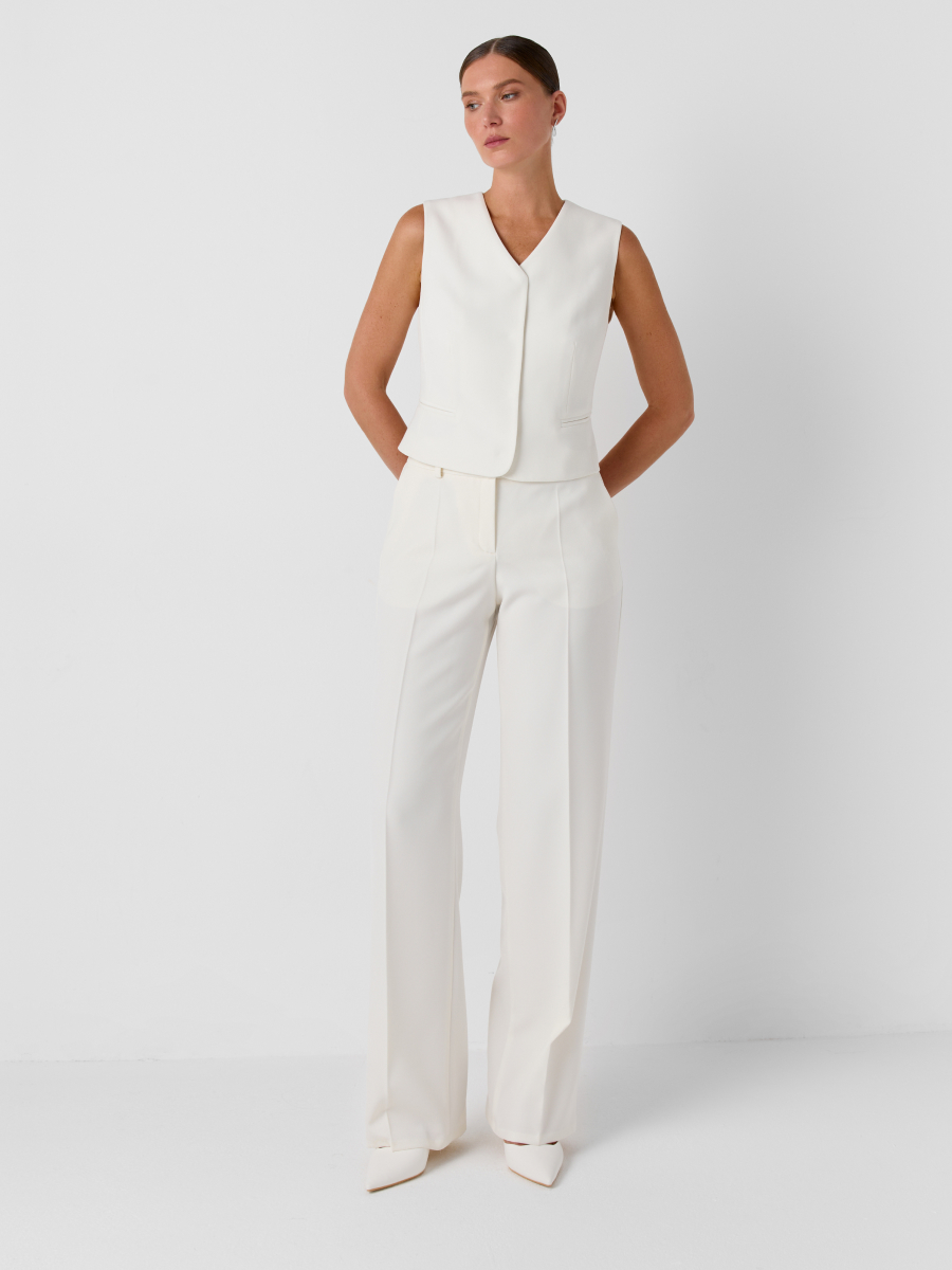Брюки из костюмной ткани. Прямой силуэт. На поясе со шлёвками. Полная длина. Боковые карманы. Заутюжены стрелки. Застёжка на молнию и крючки. Составляют комплект с жакетом (2.3.3-893)