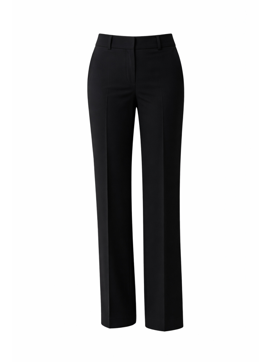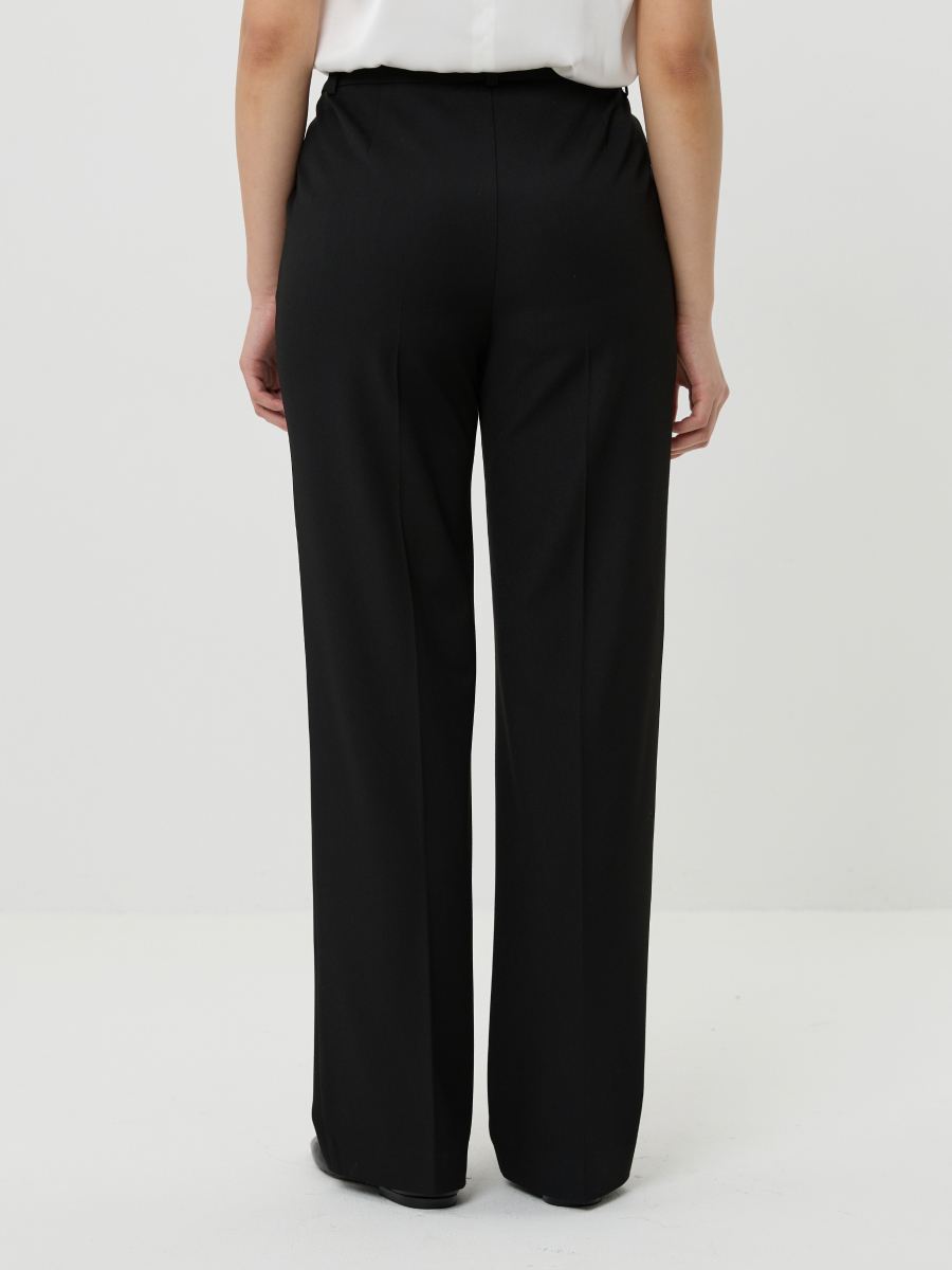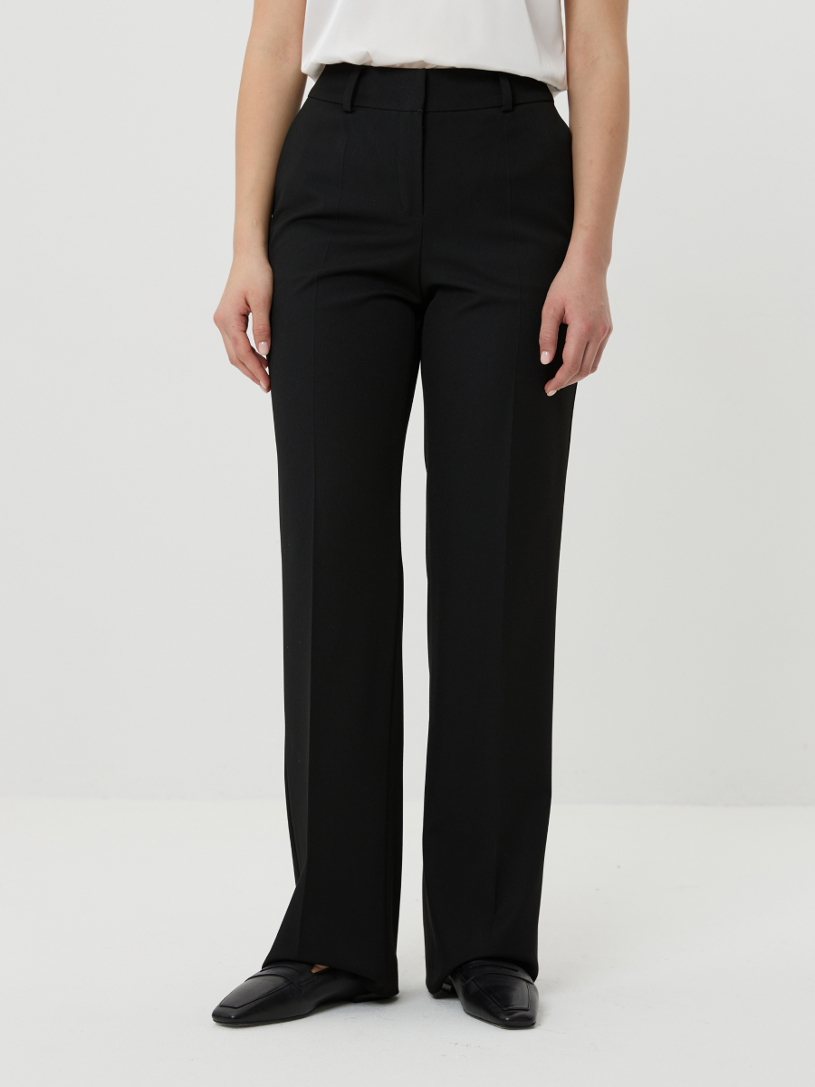 Классические брюки с комфортной средней посадкой комплиментарно подчеркивают фигуру. Классический черный цвет великолепно вписывается в базовый гардероб, виртуозно сочетаясь с любым верхом. Модель выполнена из несминаемой, гигроскопичной костюмной ткани.
