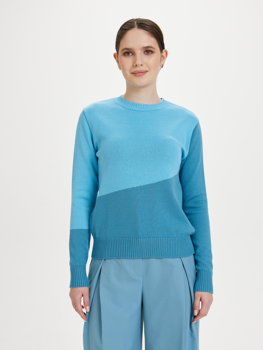 Джемпер прямого силуэта с круглой горловиной, базовый вариант для составления разнообразных образов. Нежное сочетание цветов и плавные линии сделают образ интересным и мягким.