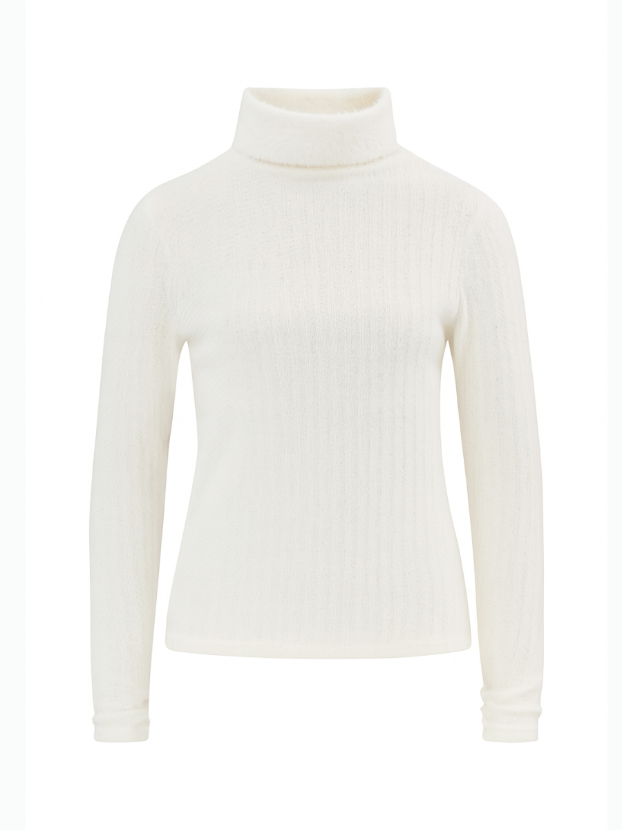 Водолазка из фактурного трикотажа в универсальном молочном оттенке — базовая и при этом выразительная модель, которая легко адаптируется под сезон и стиль. Полупрозрачная жаккардовая текстура придаёт изделию визуальную глубину и лёгкое сияние, формируя запоминающийся и элегантный образ. Уютная и тактильно приятная ткань делает водолазку идеальной для повседневной носки, а её лаконичный крой позволяет носить изделие как самостоятельно, так и в составе многослойных комплектов — под жакеты, кардиганы или жилеты. Модель легко сочетается с любыми поясными изделиями — от классических брюк до трикотажных юбок, создавая сбалансированные и стильные образы на каждый день.