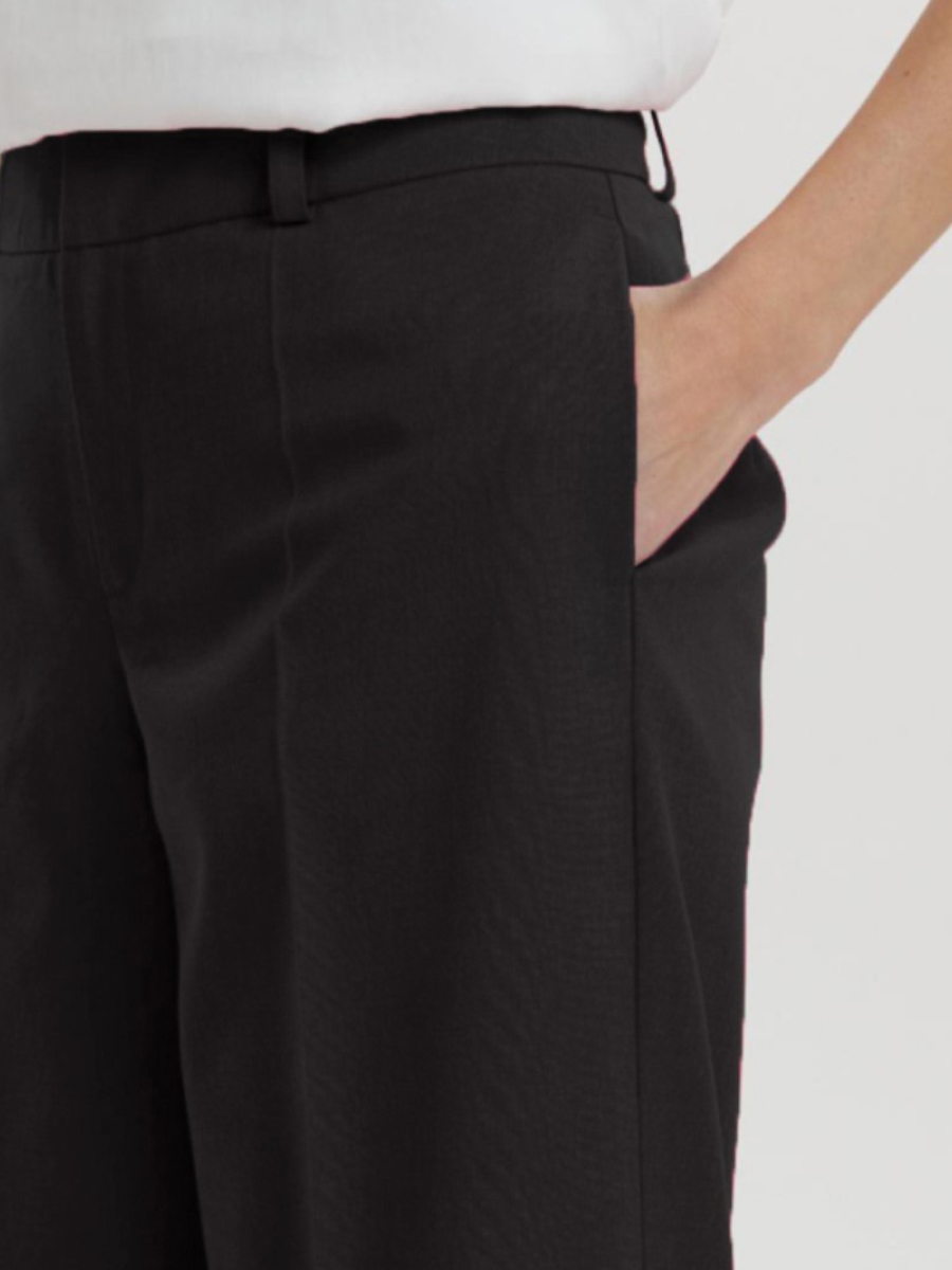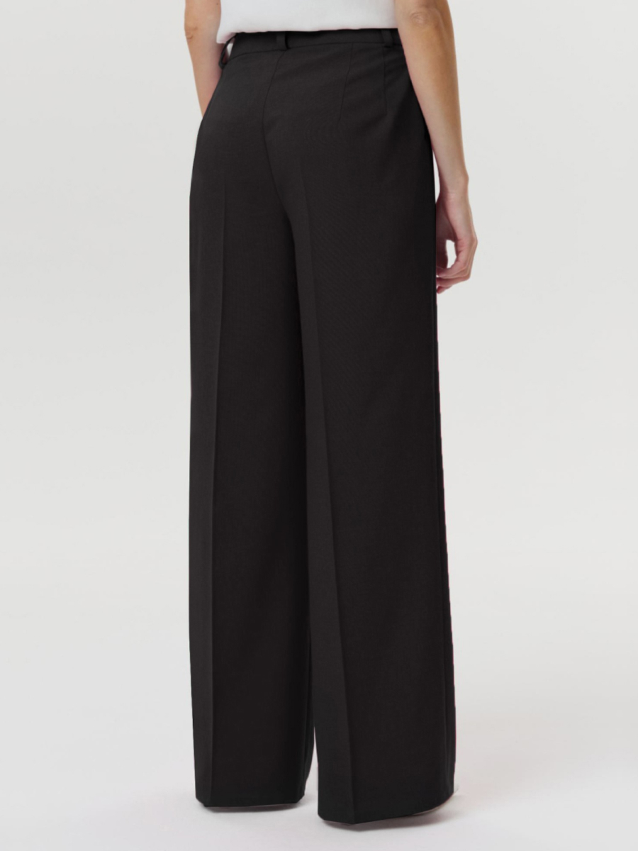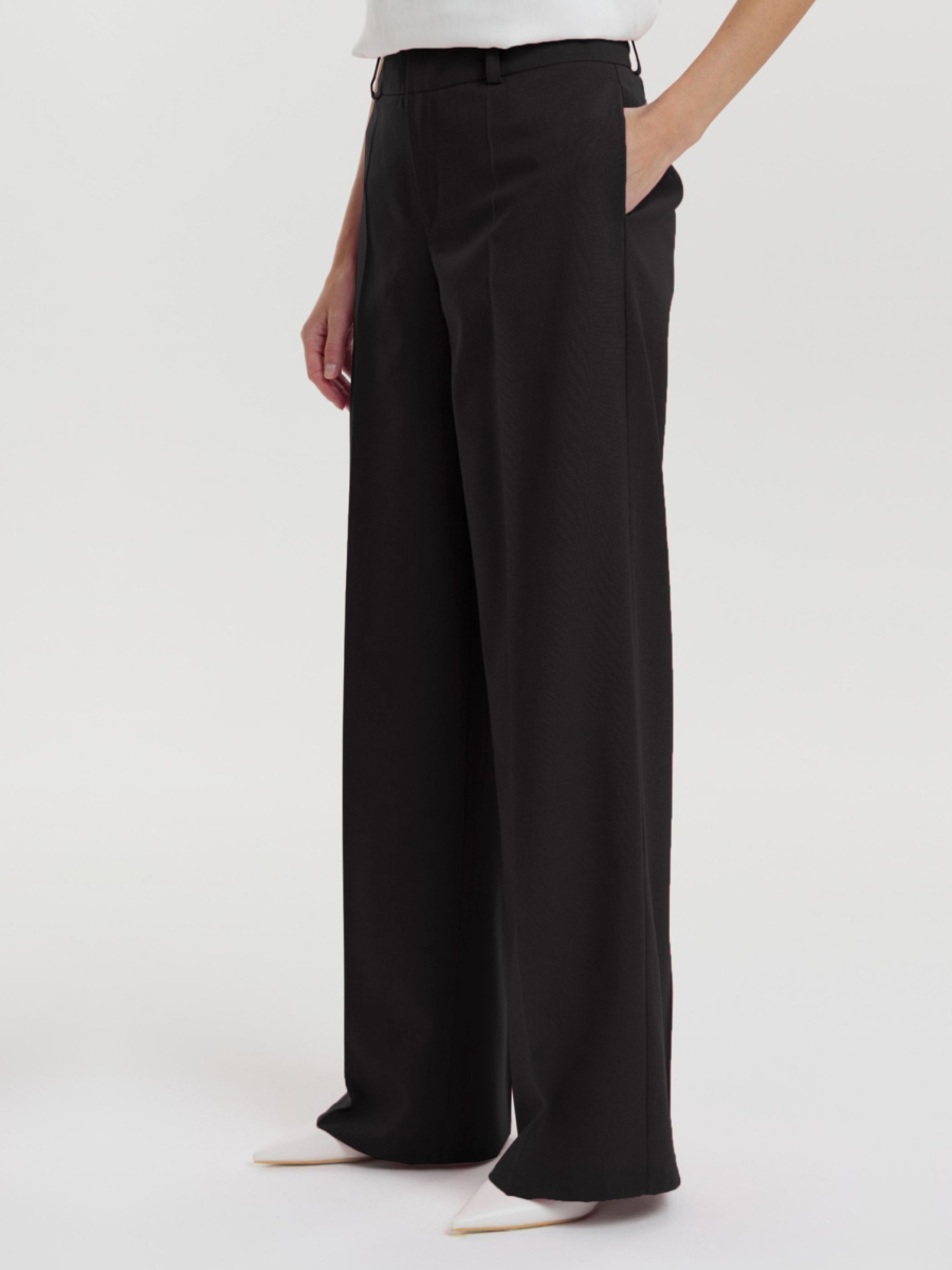 Классические брюки с комфортной средней посадкой комплиментарно подчеркивают фигуру. Черный цвет великолепно вписывается в базовый гардероб, виртуозно сочетаясь с любым верхом. Модель выполнена из несминаемой, гигроскопичной костюмной ткани.