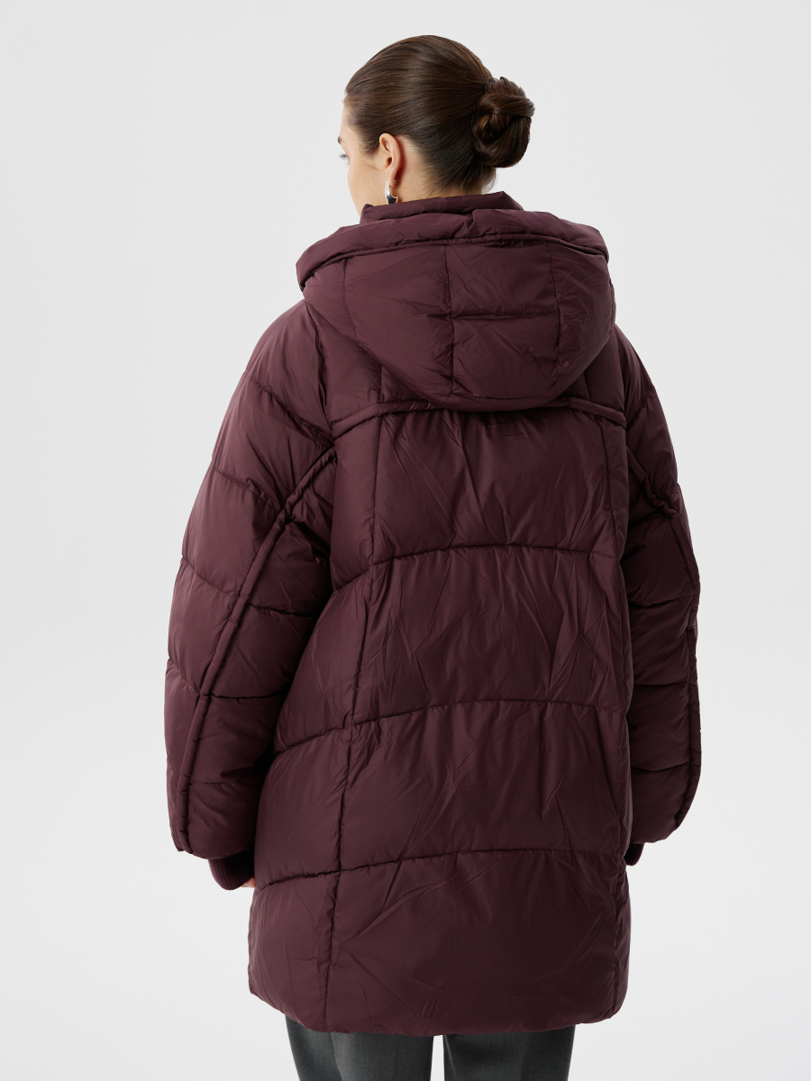 Куртка из био-пуха с капюшоном на молнии в винном цвете