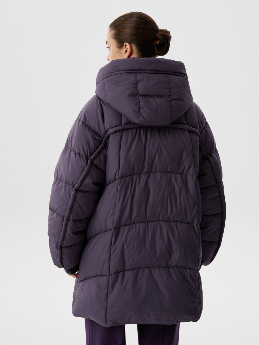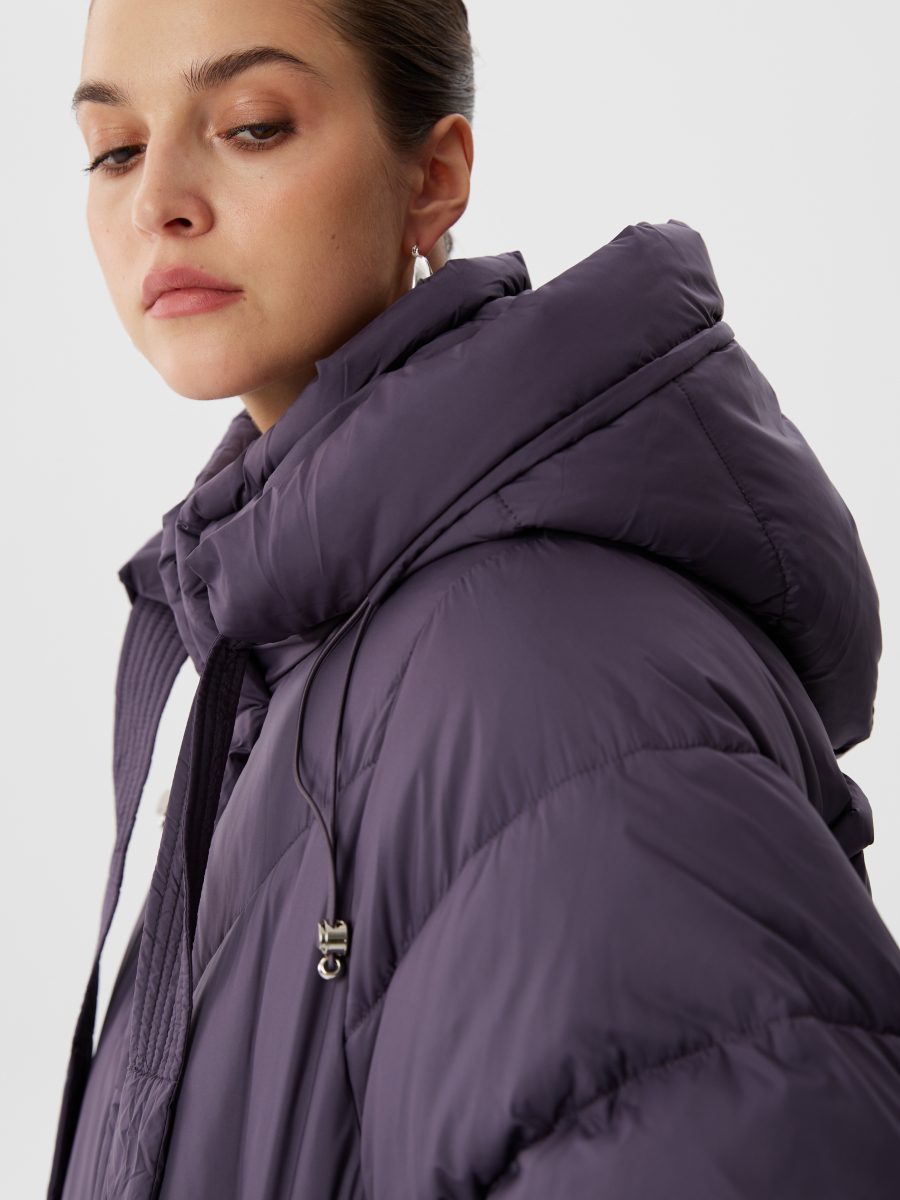 Куртка из био-пуха с капюшоном на молнии в виноградном цвете