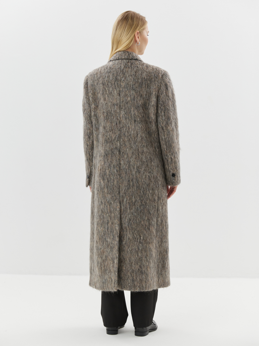 Пальто шерстяное с эффектом длинного ворса в цвете капучино