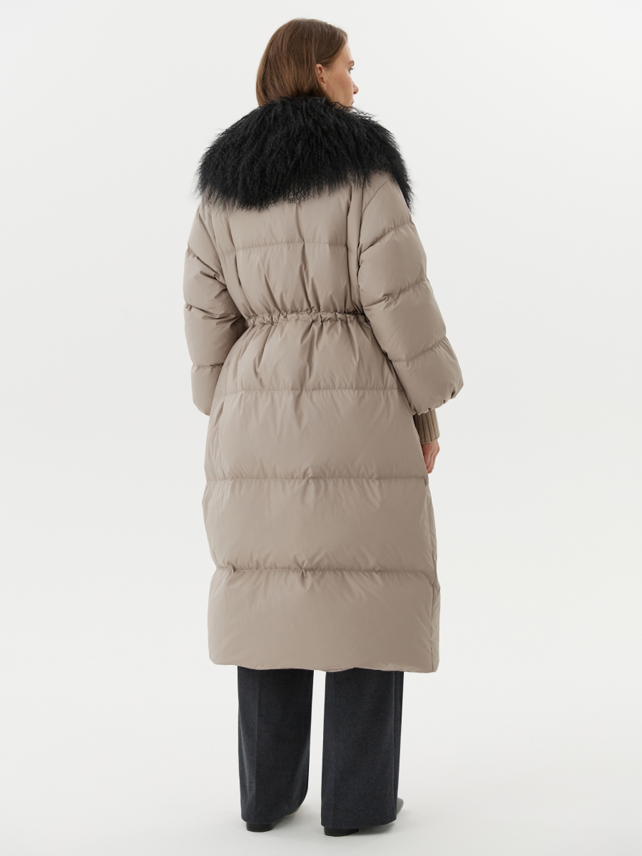 Премиальный зимний пуховик с мехом ламы в сером цвете