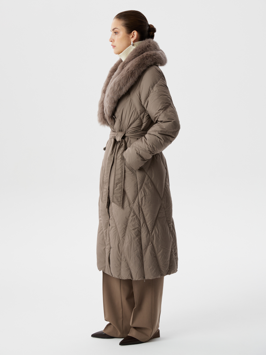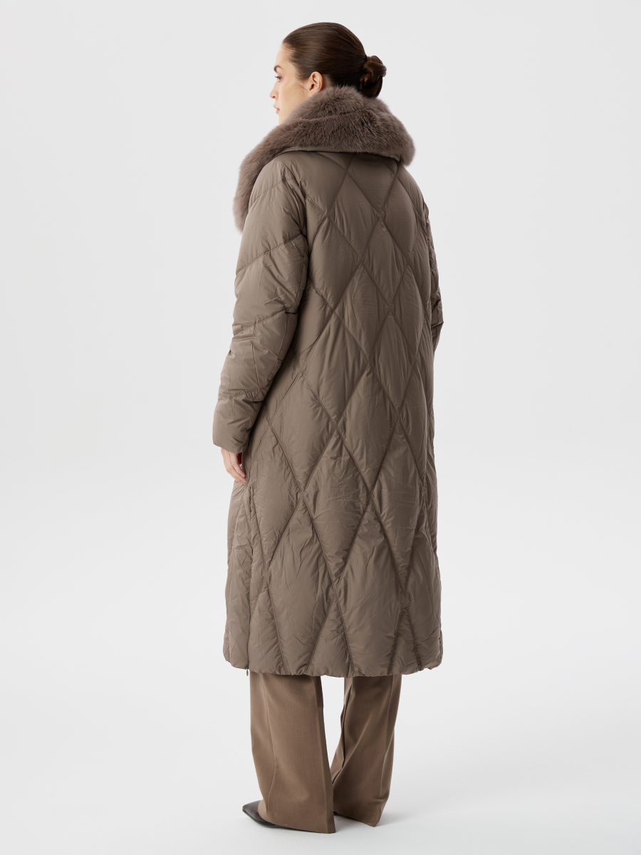 Пуховик из гусиного пуха в цвете капучино с натуральным мехом