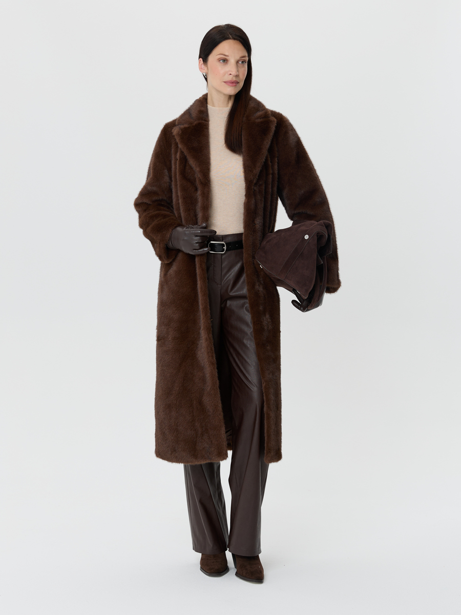 Классическая шуба из эко-меха с английским воротом акутальный тренд сезона. Модель дополнена поясом и карманами