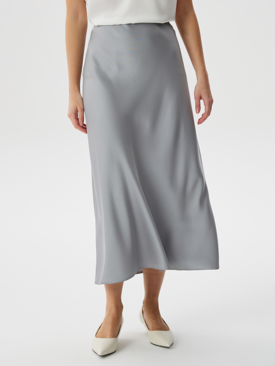 Юбка миди из атласа с матовым переливом в оттенке шелковистый серый — изящная и женственная модель с акцентом на плавность линий. Трапециевидный силуэт, выполненный по косой, подчёркивает естественные изгибы и красиво драпируется в движении. Пояс на потайной резинке обеспечивает мягкую посадку без давления. Юбка выполнена на натуральной подкладке, что делает её комфортной в носке. Сочетается с топом (2.71.3-283.3), формируя цельный образ в благородной цветовой гамме.