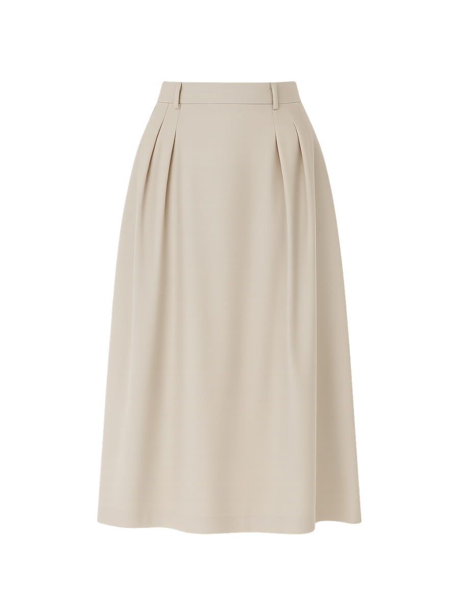 Юбка силуэта трапеция из мягкой костюмной поливискозы в деликатном бежевом оттенке — элегантная и практичная модель, идеально подходящая для делового гардероба и повседневных образов. Плотная ткань с добавлением вискозы комфортна в носке, держит форму и выглядит аккуратно в течение всего дня. Брючные складки формируют идеальный Х-образный силуэт, который подчёркивает талию и мягко скрывает возможные нюансы фигуры. Карманы в боковых швах делают модель функциональной, а шлевки для ремня позволяют добавить акцент в виде пояса. Внутренний подклад с вискозой обеспечивает дополнительный комфорт и лёгкость движения. Юбка составляет костюм с жакетом 2.3.1-911, отлично сочетается с блузами 2.73.1-893, 2.7.3-876, 2.7.3-900, а также гармонично дополняется жилетом 2.9.3-429 и рубашкой 2.73.1-894 — для создания многослойных, стильных и сбалансированных образов.